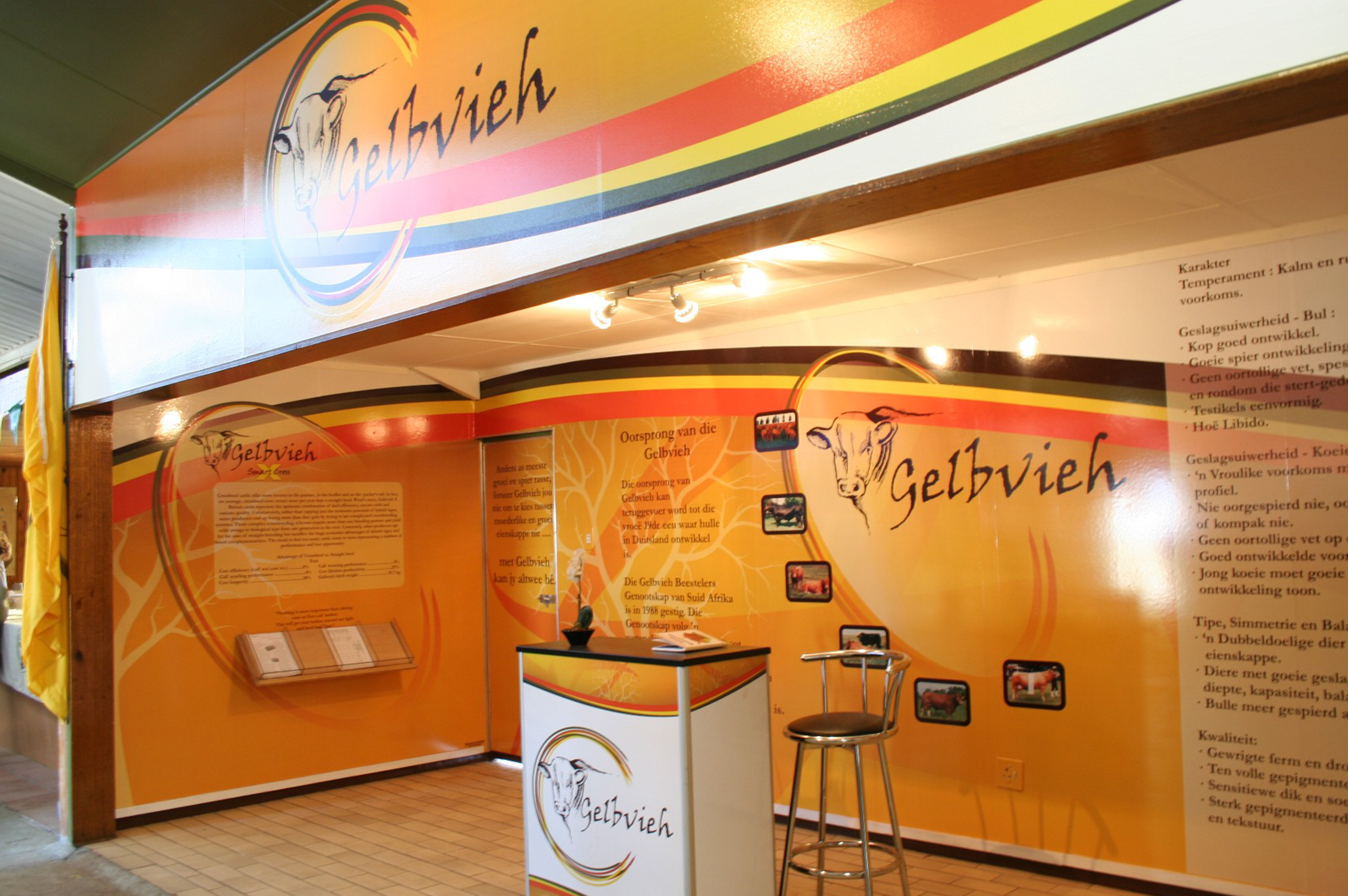 Scope of work included the development of a Brand and Exhibition for the South African Gelbvieh Association, founded in Ermelo (Mpumalanga Province) in September 1988. The Society has a scientific approach to breed improvement and performance testing is therefore compulsory to all members while visual appraisal is a prerequisite for the registration of animals.