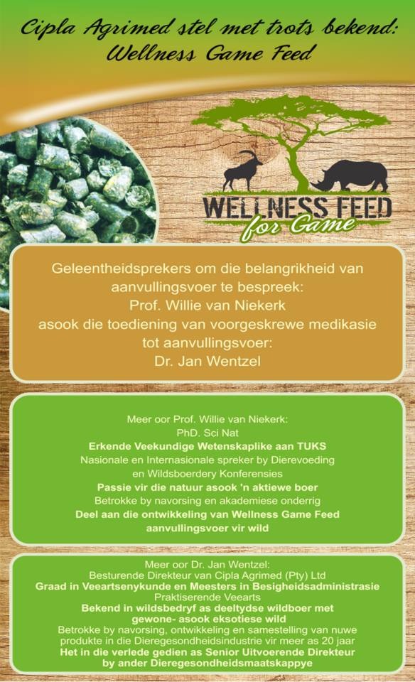 Beryl talked to Prof. Willie van Niekerk from the University of Pretoria, who shared his knowledge on important topics such as the influence of nutrition on successful game reproduction programs. Listen to recorded programs here: https://soundcloud.com/beryl-bronkhorst/podcast-episode-3. Blaze Innovative Brand Management also facilitated workshops and open days where Game Farmers and Game Feed distributors where invited to learn more about the Wellness Game Feed range of quality, Lucerne based feed.