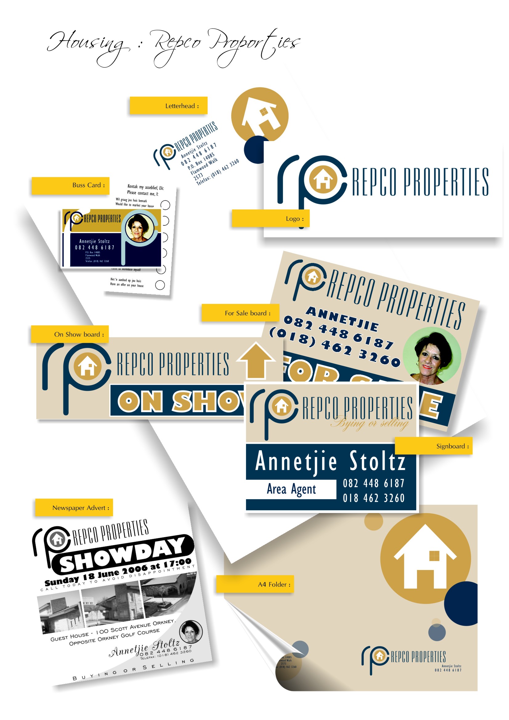 cosisting of a letterhead, logo, signage and newspaper adverts.